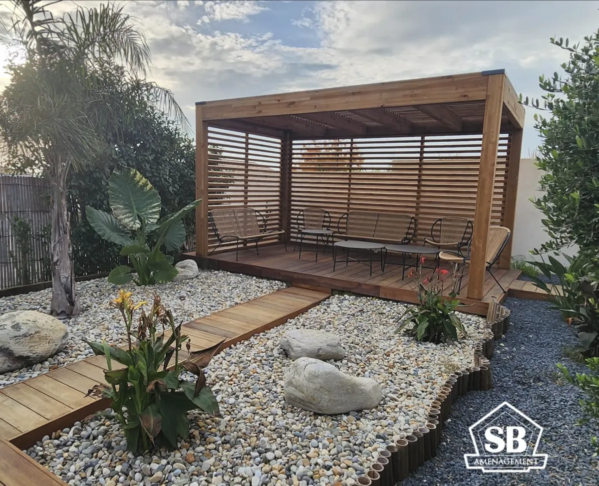 Entreprise locale située à Aubais (30250), SB Aménagement propose la construction et l'installation de terrasses, de pergolas, de bardage, de pool house et tout types d'aménagement en bois pour les particuliers et professionels dans toute la région du Gard, de l'Hérault.